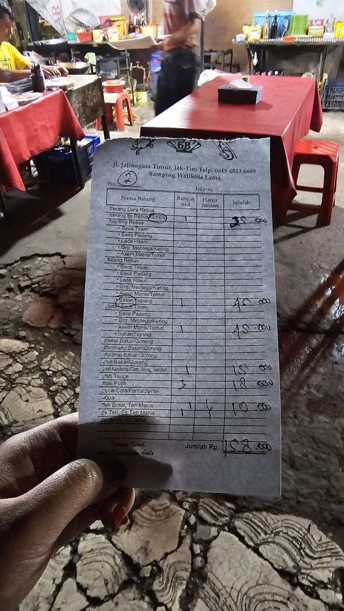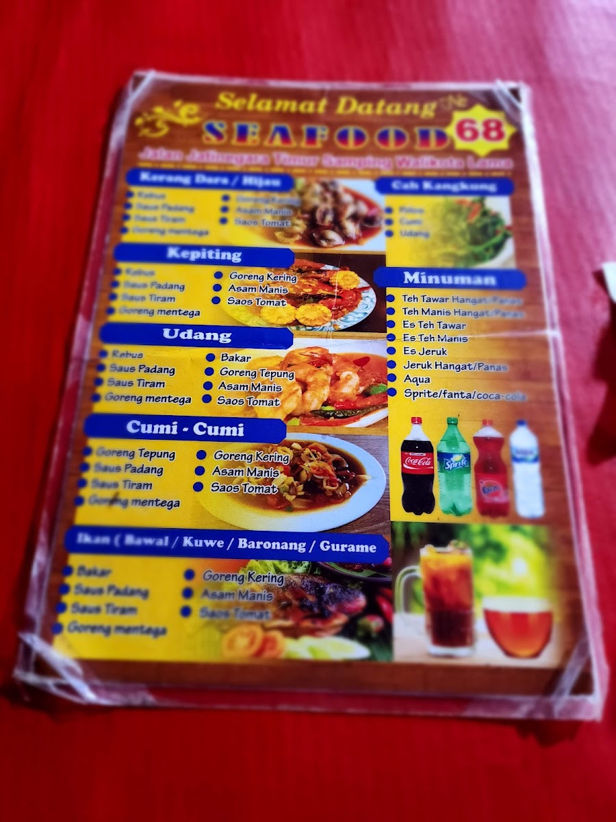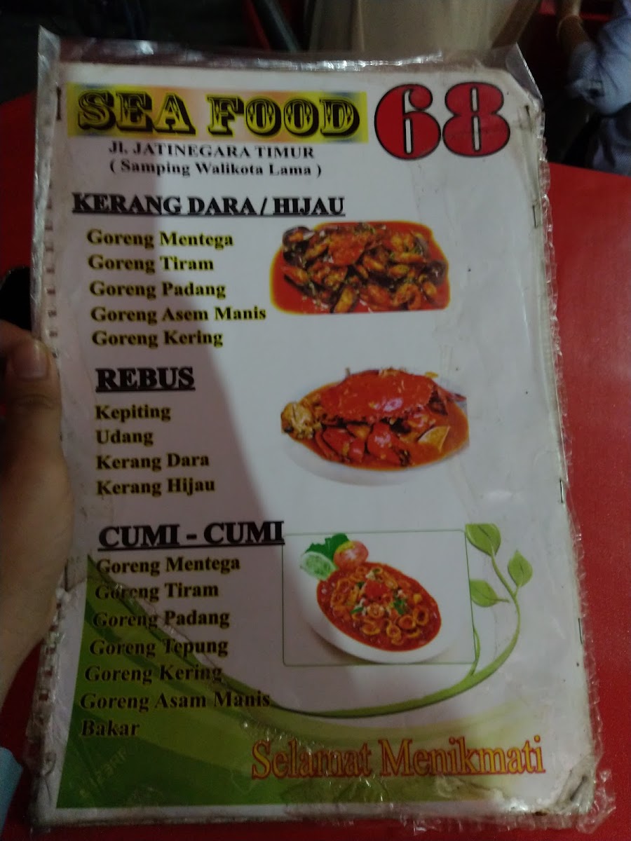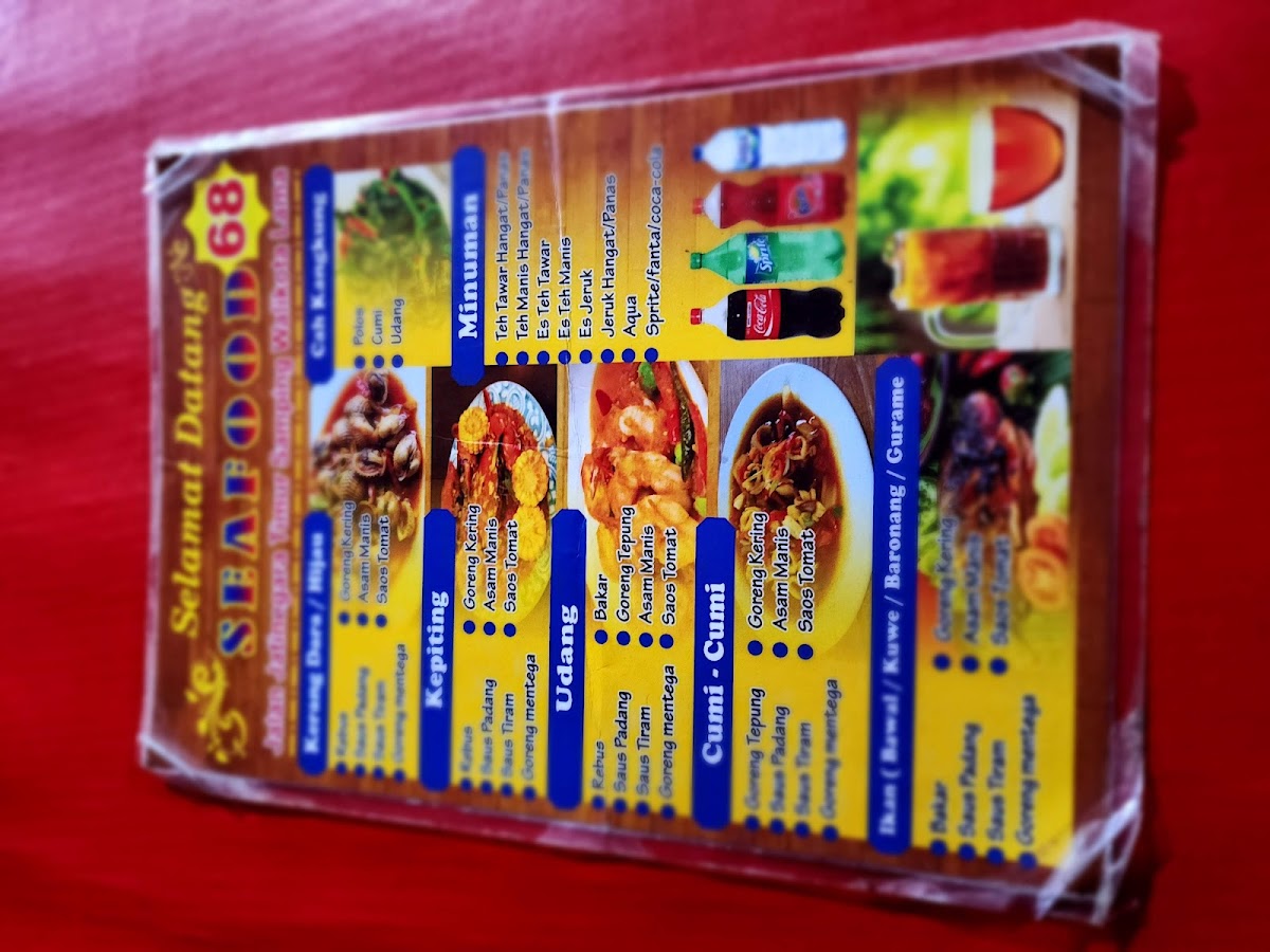 The menu at Seafood 68 offers a delightful selection of fresh and flavorful dishes that are perfect for seafood lovers. Among the standout items, Kerang Dara Dan Udang Rebus features tender clams and shrimp boiled to perfection, bringing out their natural sweetness. For those who enjoy a bit of a zestier flavor, the Kerang Hijau Rebus offers a simple yet savory taste with steamed green mussels. Another dish worth trying is the Goreng Baronang Padang, where Baronang fish is fried and coated in a rich, aromatic Padang seasoning.