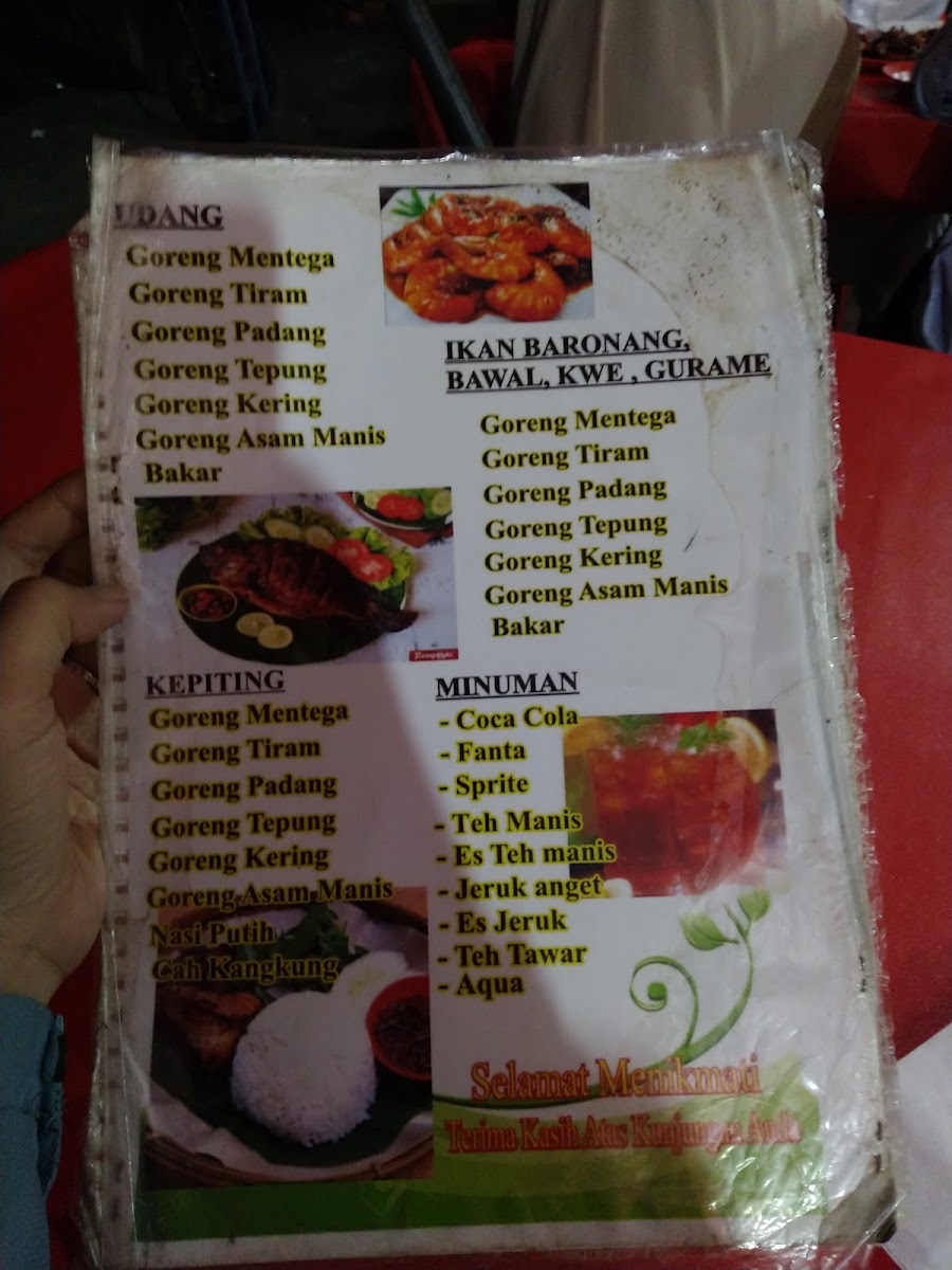 If you're a fan of prawns, the Prawns with Butter Sauce is an excellent choice, offering a buttery, creamy coating that complements the natural sweetness of the prawns. Stir Fried Kangkung adds a nice balance to the seafood-heavy menu, with its savory, slightly garlicky flavor making it the perfect side dish. For mussel enthusiasts, Kerang Hijau Tiram delivers a delightful experience with the unique taste of green mussels. Another spicy favorite is the Cumi Saus Padang Pake Rawit Mantep Deh Pokoknya, a flavorful squid dish coated in a spicy Padang sauce, ensuring a fiery kick with each bite.